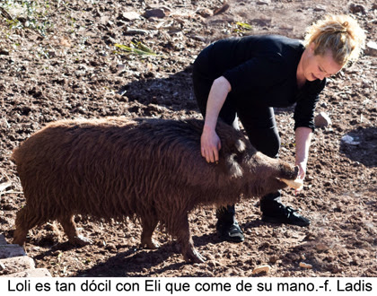 con un jabalí hembra. Su marido encontró en el campo una cría muy pequeñita de